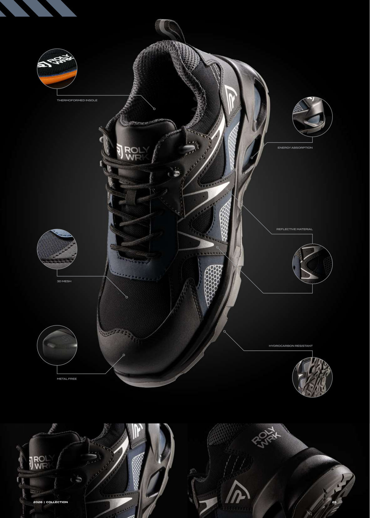 Arbeitsschuhe mit sportlichem Stil und 3D-Mesh-Stoff, leicht und ausgewogen für anstrengende Umgebungen.