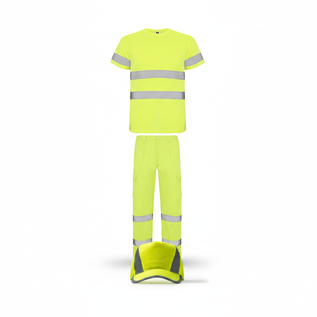 Professionelles Set aus hochsichtbarer Arbeitskleidung für maximale Sicherheit und Sichtbarkeit bei schlechten Lichtverhältnissen oder auf Gefahrenstellen.