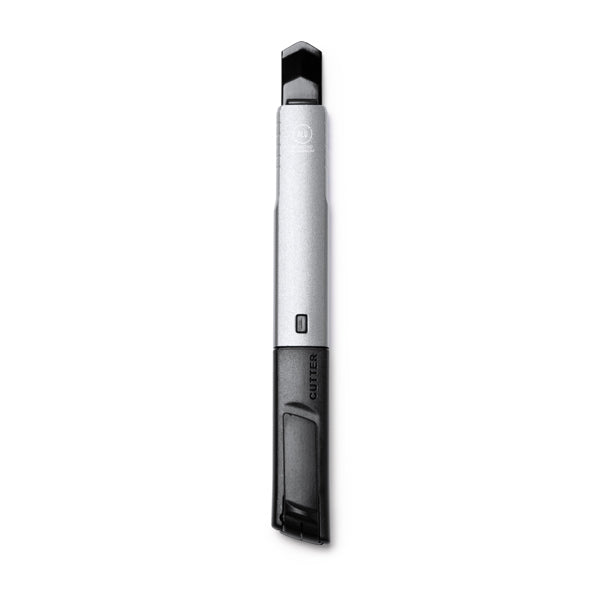 Schneider mit Klinge aus rostfreiem Stahl und Gehäuse aus recyceltem Aluminium. Abnehmbare Haube zum Schneiden und Einstellen der Klinge. Verpackung in einer Öko-Design-Box.