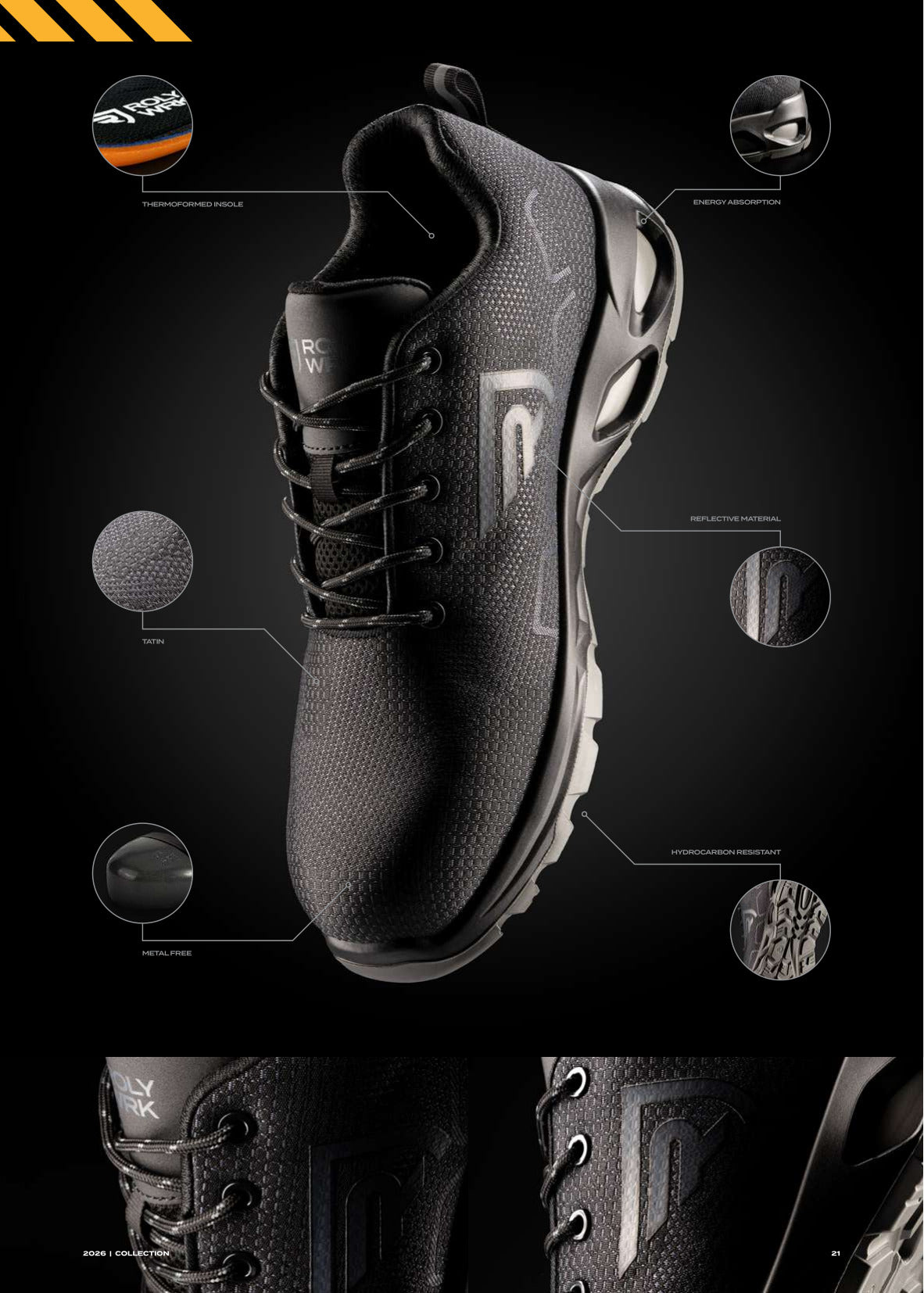 Bequeme sportliche Arbeitsschuhe mit reflektierenden und atmungsaktiven Elementen.