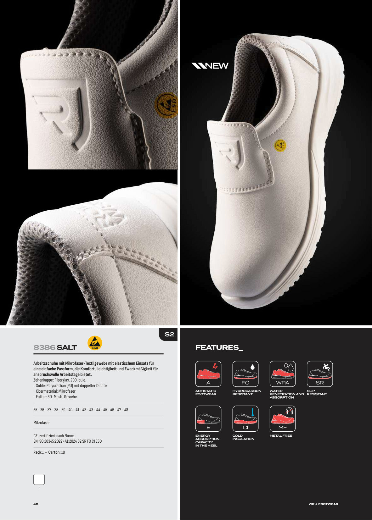 CE-zertifiziert nach Norm: EN ISO 20345:2022 + A1:2024 S2 SR FO CI + ESD