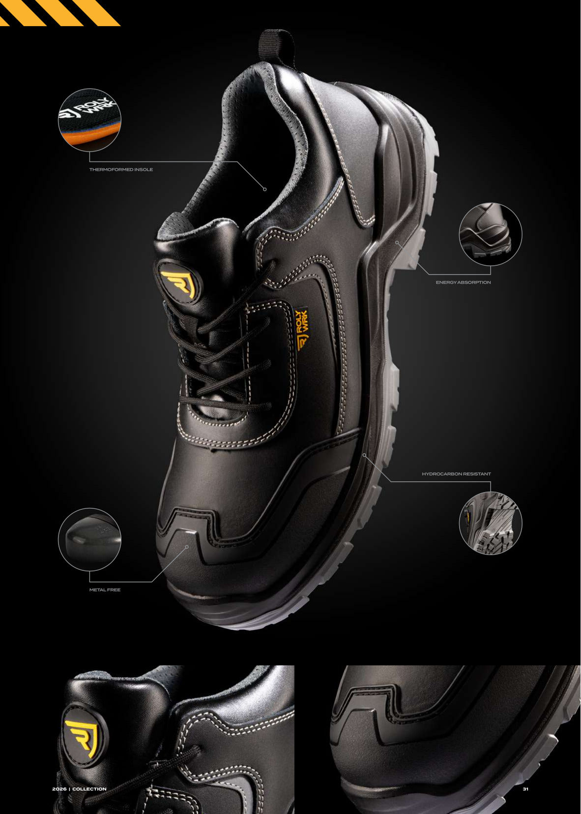- Verstärkter Zehenbereich für zusätzliche Haltbarkeit im Aufprallbereich (SC – Schutzkappe)