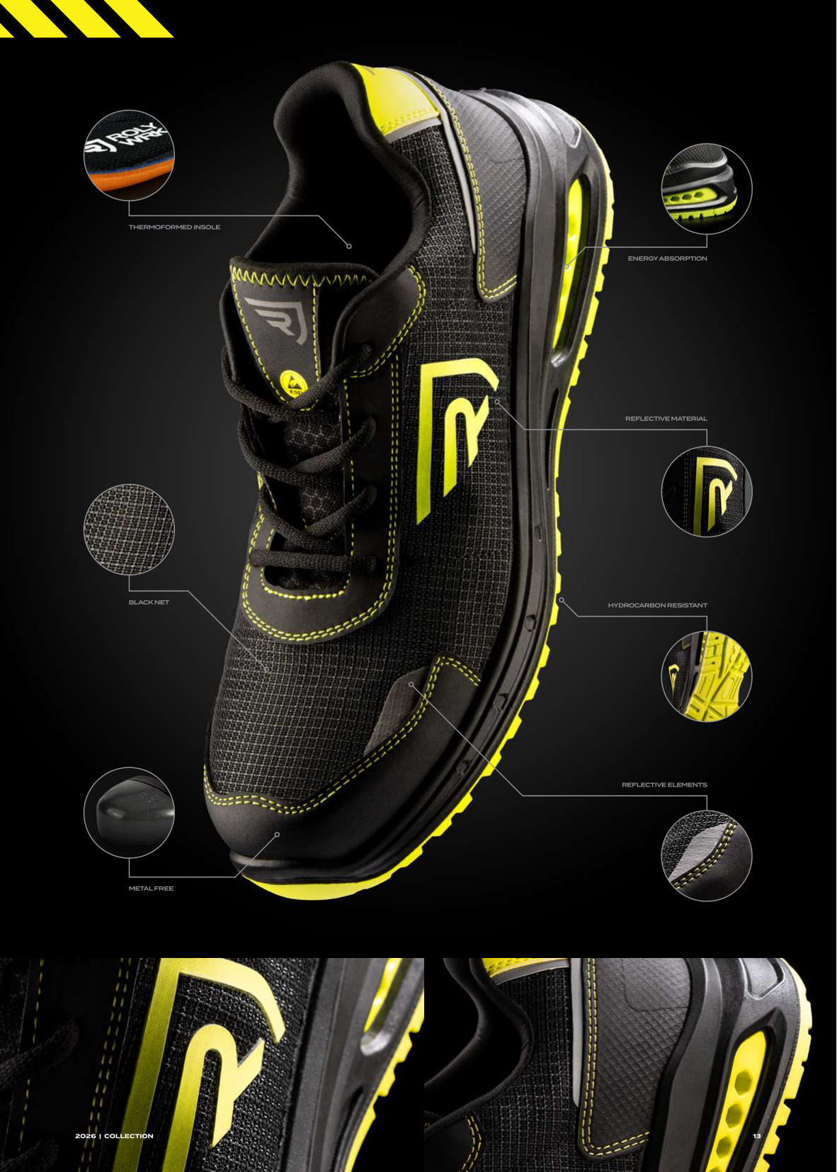 - Obermaterial: schwarzes NETZ + schwarze Nubuk-Mikrofaser + reflektierender Druck