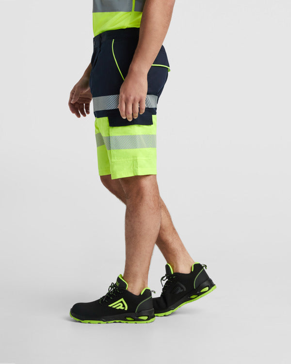 Hochsichtbare zweifarbige Shorts mit mehreren Taschen.